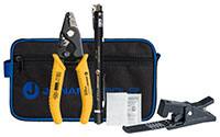Zestaw do czyszczenia i przygotowania złącza światłowodowego TK-183 firmy Jonard Tools oferuje produkty do czyszczenia i przygotowania do stosowania na powierzchniach czołowych złączy 1,25 mm i 2,5 mm oraz adapterach przegrody. Ten zestaw zawiera ściągacz do światłowodów, obcinacz do włókien, wilgotne chusteczki do światłowodów, wizualny lokalizator uszkodzeń i wytrzymałą walizkę do przenoszenia.