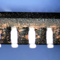 Zastosowanie mikroskopu stereoskopowego, wygląd elementów do obserwacji dookólnej 360 °. Stan obserwacji skupia się na opakowaniu produktu; rodzaj chipa, data, partia; stan nadruku i opakowania; układ pinów, współpłaszczyznowy z poszyciem obudowy i tak dalej.